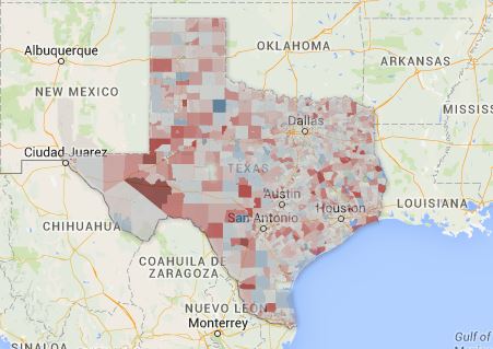 So what would Texas’ home values look like from space? Using new data released earlier this month from the U.S. Census Bureau, the Austin Business Journal compiled a map showing how median home value estimates in Texas from the Census’ American Community Survey 5-Year-Estimates have changed since 2010. The map, embedded below, colors Texas’ 5,000-plus Census tracts from blue to red to signify the percentage change in median home value estimates. A blue-shaded tract is one where median home value estimates have fallen. A red-shaded tract is one where median home value estimates have risen. Be sure to click within the tracts to explore its statistics. View this article on our mobile app.